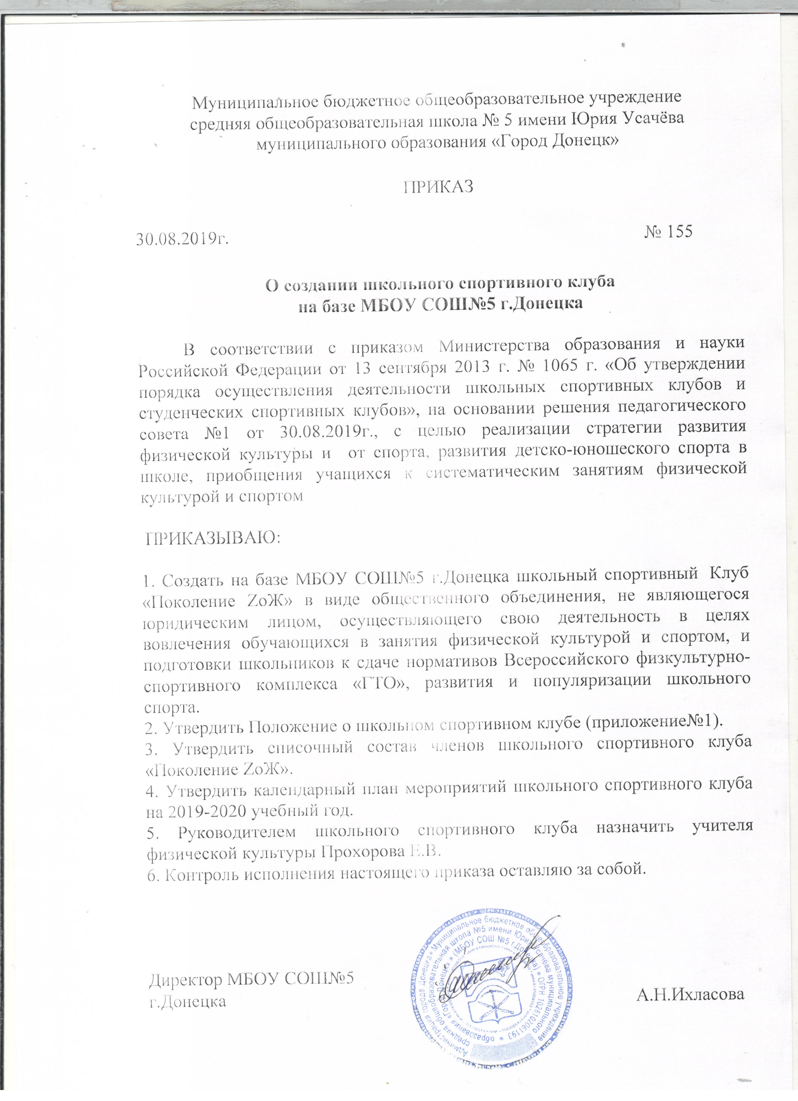 МБОУ СОШ№5 приказ ШСК
