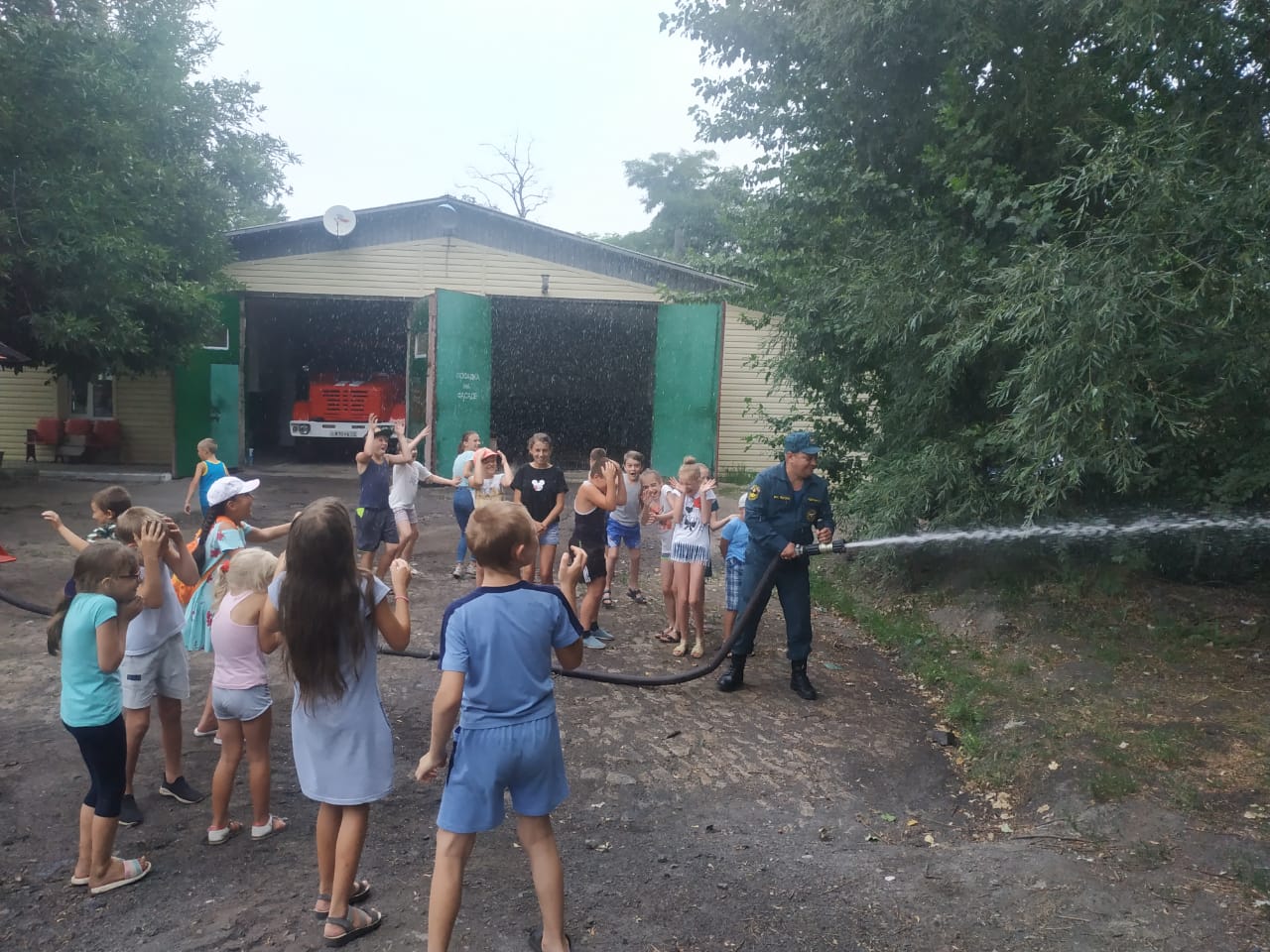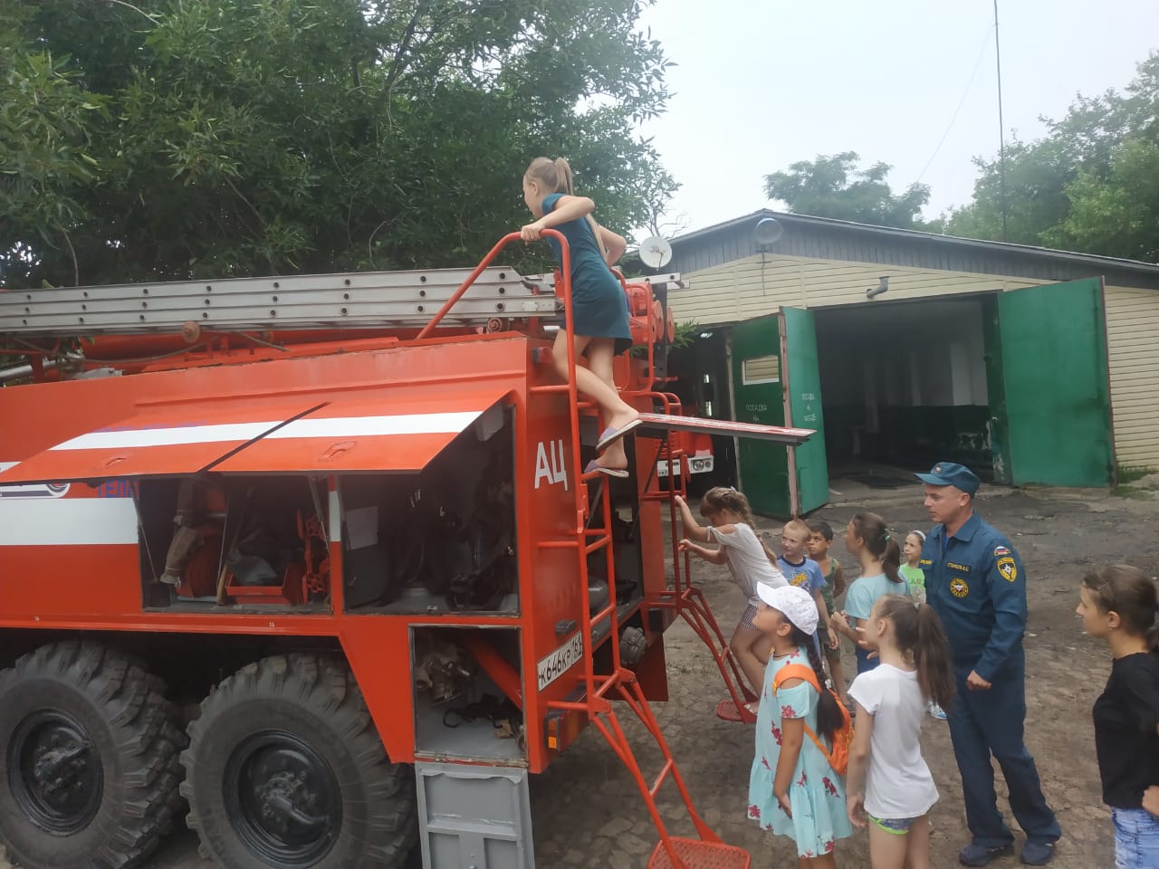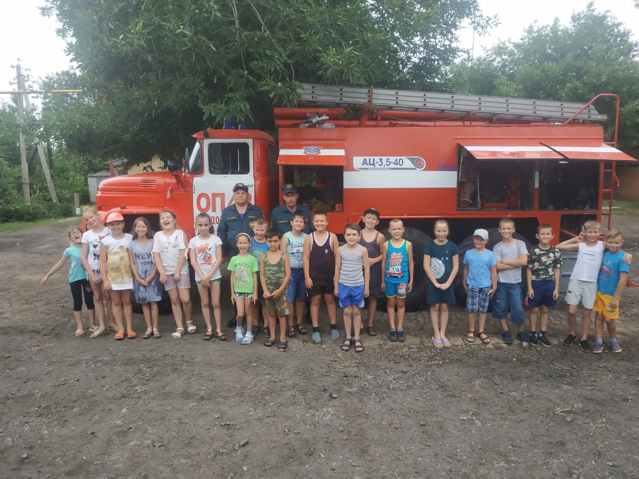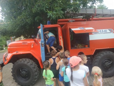 24.06.2019 г. в пришкольном лагере прошел «День безопасности». С утра воспитанники повторили правила поведения в быту. Затем посетили пожарную часть, где узнали о работе пожарного. Ребята задавали много вопросов, на которые получили интересные развёрнутые ответы специалистов. Им представилась возможность побывать за рулем пожарной машины, изучить все отсеки, и даже развернуть пожарные рукава.