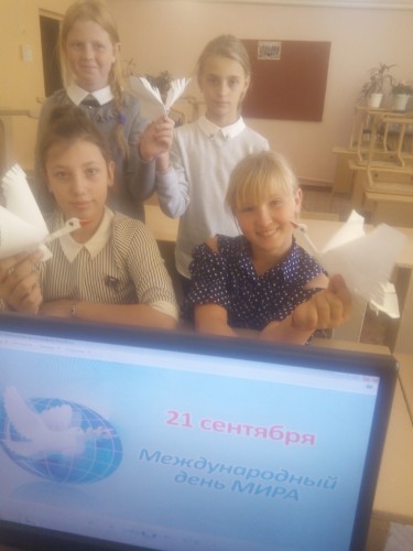 20 сентября 2019 года в 6 классе прошел классный час «Я за мир во всем мире!», приуроченный к Международному дню мира, который ежегодно отмечается 21 сентября. Обучающиеся читали стихи о мире и дружбе, познакомились с историей появления Международного Дня мира.