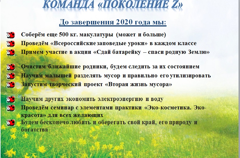 В преддверии праздника школьная команда «Поколение Z» приняла участие во Всероссийской «Заповедной викторине», которая была организована региональным отделением Российского движения школьников (РДШ) республики Карелия. В течение 2 недель ребята отвечали на интересные вопросы о разных особо охраняемых природных территориях республики Карелия, создали видеоролик о заповедных местах нашей Ростовской области – природном биосферном заповеднике «Ростовский», в котором рассказывали о проблемах и трудностях этого места, делали неповторимую инфографику, составляли список эко-дел, которые будут реализованы до конца года.