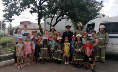 В отряде «Юный пожарный» 22 июля были гости. Это добровольная «Казачья дружина» при 43 ПСЧ г. Донецка.