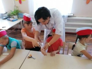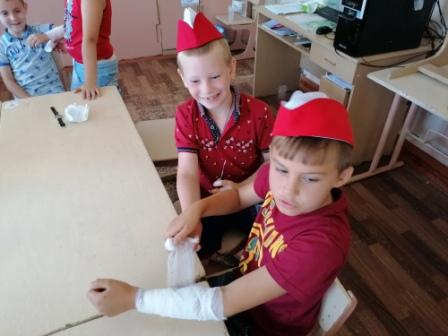 Также ребята изучали правила оказания первой помощи при ожогах и затем учились накладывать марлевые повязки.