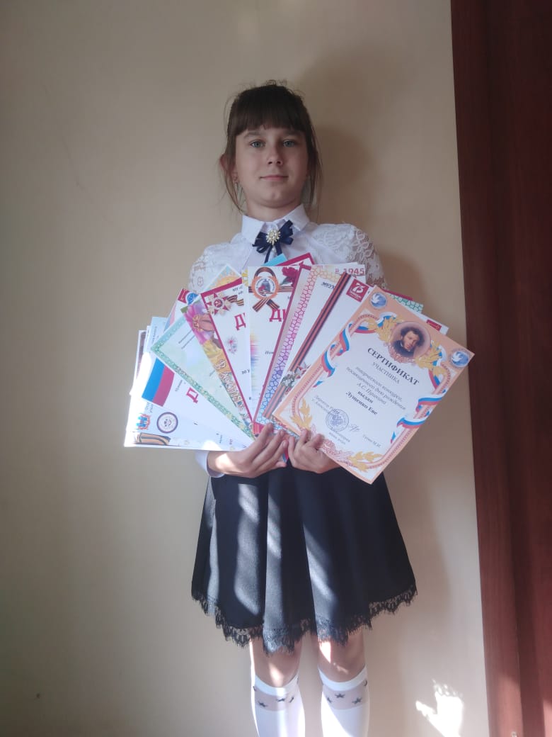 1. Лущенко Ева (принимала участие в конкурсе Открытом Всероссийском онлайн - фестивале Спасибо за Победу.