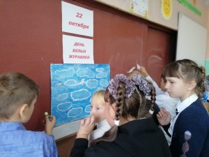 В 4 классе (учитель Рыбалкина А. А.) стало традицией 22 октября отмечать праздник Белых журавлей. В этом году весь учебный день дети выполняли проект «Летящие журавли».  Журавли во всем мире - это особенный символ нежности, мира. Многие народы с трепетом относятся к этим птицам. Всем нам хорошо знакома песня «Журавли», созданная Яном Френкелем на стихи Расула Гамзатова. Она стала одним из символов памяти обо всех павших на войне.  Во многих городах появились памятники погибшим воинам, в которых был воплощён именно этот символ – улетающие в небеса журавли. А ещё – белый журавль стал символом акции памяти «Бессмертный полк», в которой мы участвуем 9 мая.