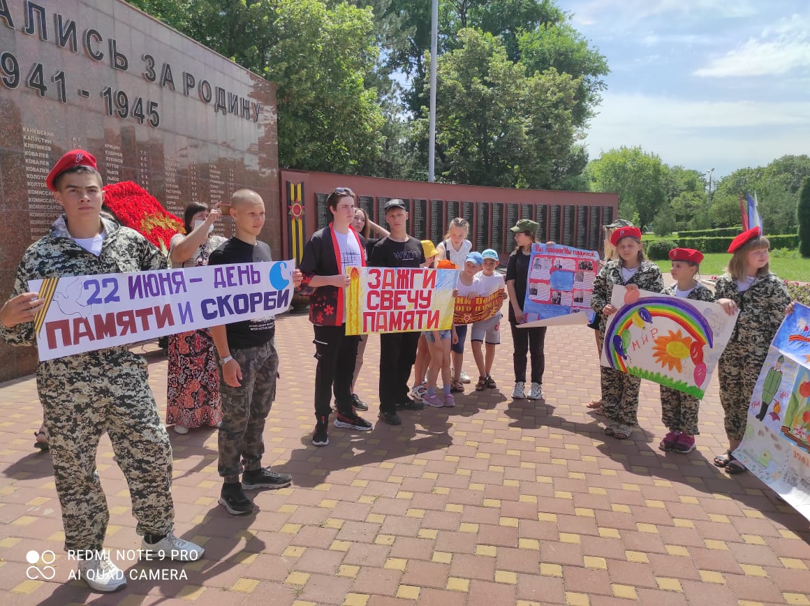 В этот день 22 июня по всей стране проходит Всероссийская акция «Свеча памяти». Делегация отряда «Юнармия» во главе с учителем физкультуры Прохоровым Евгением Владимировичем приняли участие в городском мероприятии «Свеча памяти».
