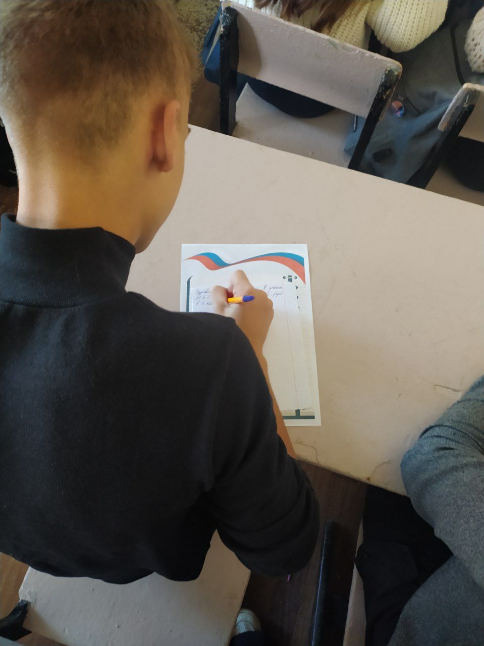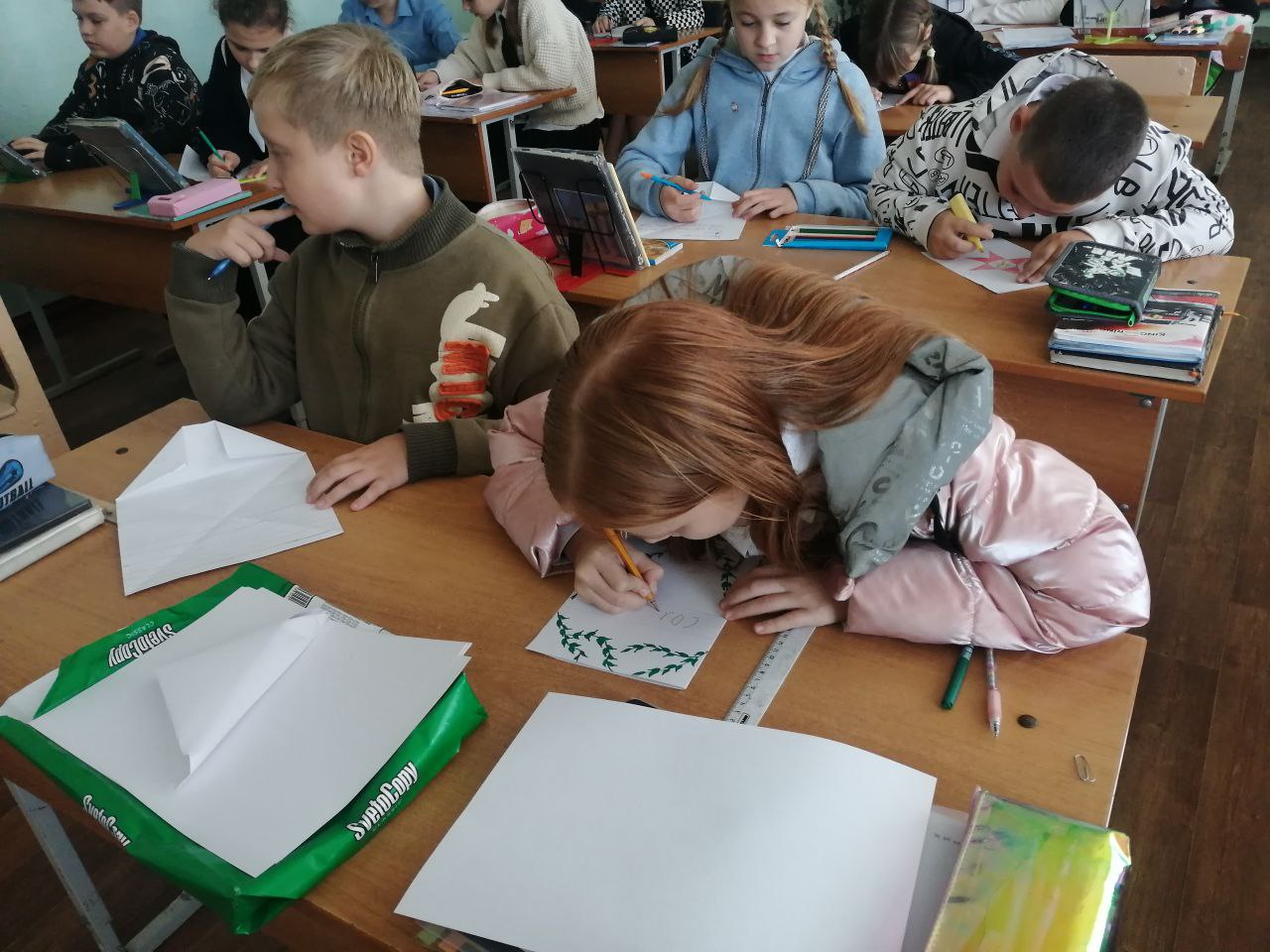 Дети, которые обучаются в МБОУ СОШ№ 5, не равнодушны к жизням военных России, поэтому к концу урока мужества они с трепетом писали письма Солдатам. Каждый ребенок старательно писал нужные и важные слова, а также пытался добавить ярких красок. Именно поэтому в «письмах солдату» можно увидеть красочные рисунки военных, Флаг России и яркие лучики солнца.