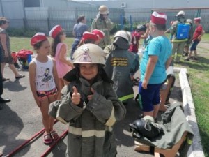 Подготовка к региональному этапу Всероссийского конкурса на лучшую организацию профильной смены «Юный пожарный» в детских летних оздоровительных учреждениях в МБОУ СОШ №5 г. Донецка идёт полным ходом. И 22 июля маленьких спасателей ждал приятный сюрприз – к нам в гости вместе с председателем ВДПО г. Донецка Белашевым Н.Д. приехала добровольная пожарная команда «Казачья дружина» при 43 ПСЧ г. Донецка.