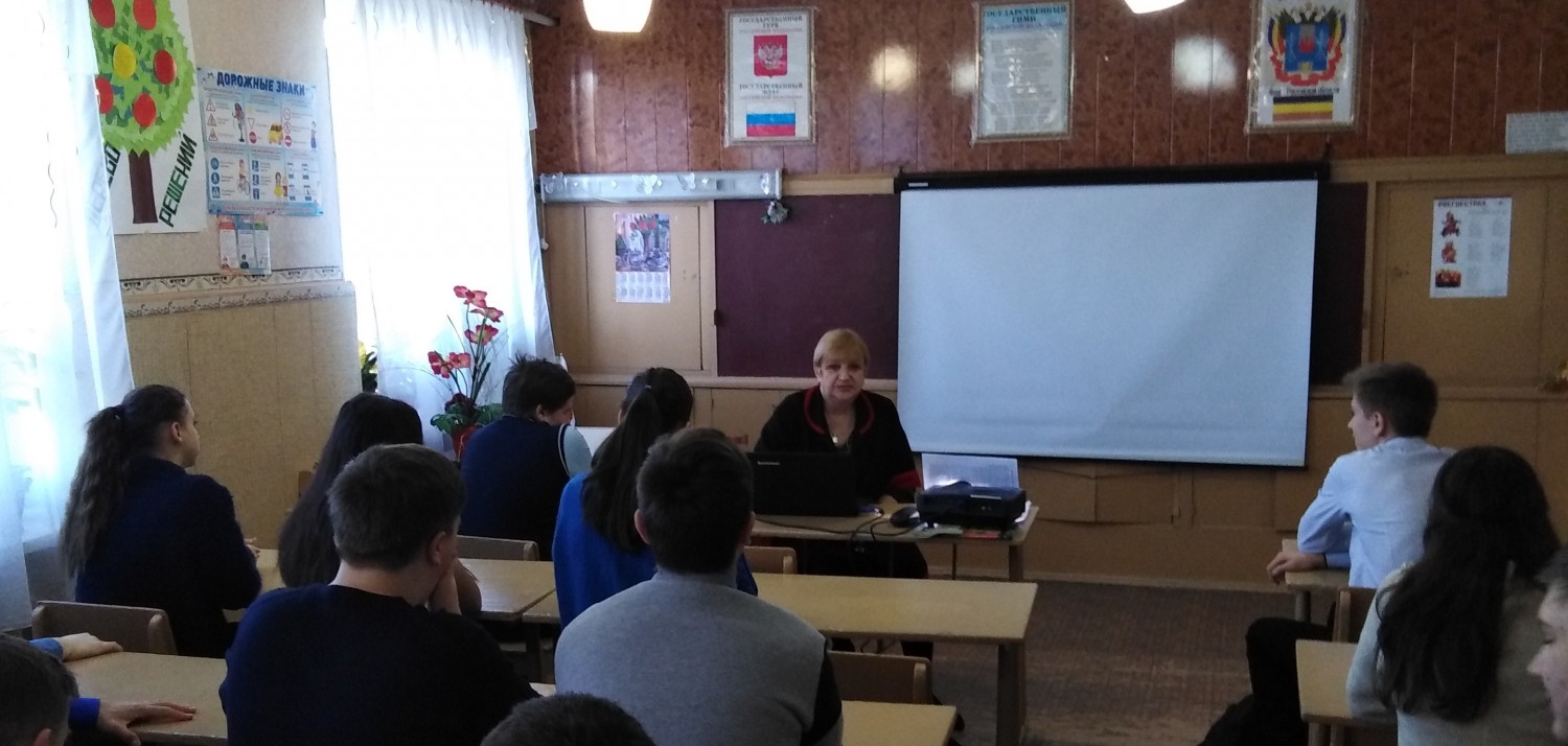 31.01.2020 г. в МБОУ СОШ №5 г. Донецка для обучающихся 9 класса прошел классный час под названием «Герои ВОВ», посвященный антифашисткой молодёжной организации «Молодая гвардия».