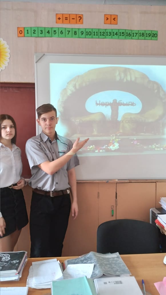 С целью формирования гражданской позиции в вопросах ответственности за радиологическую безопасность планеты; воспитания уважительного отношения к людям, совершившим подвиг при ликвидации последствий аварии на ЧАЭС. 20.04.2021 в 9 классе проведено мероприятие с использованием презентации. В ходе классного часа ребята вспомнили, что страшной страницей нашей истории стала дата 26 апреля 1986 года. В этот день в 1 час 23 мин. на четвертом энергоблоке Чернобыльской АЭС при его плановой остановке и проведении испытания турбо реактора произошел мощный взрыв, эквивалентный 500 хиросимским бомбам. Чернобыльская катастрофа стала крупнейшей за всю историю мировой ядерной энергетики, как по количеству погибших и пострадавших от ее последствий людей, так и по масштабам экологического и экономического ущерба. Об этом страшно говорить, но это было и есть. В память о трагическом событии была зажжена свеча памяти о людях, ушедших из жизни из-за полученных доз облучения.