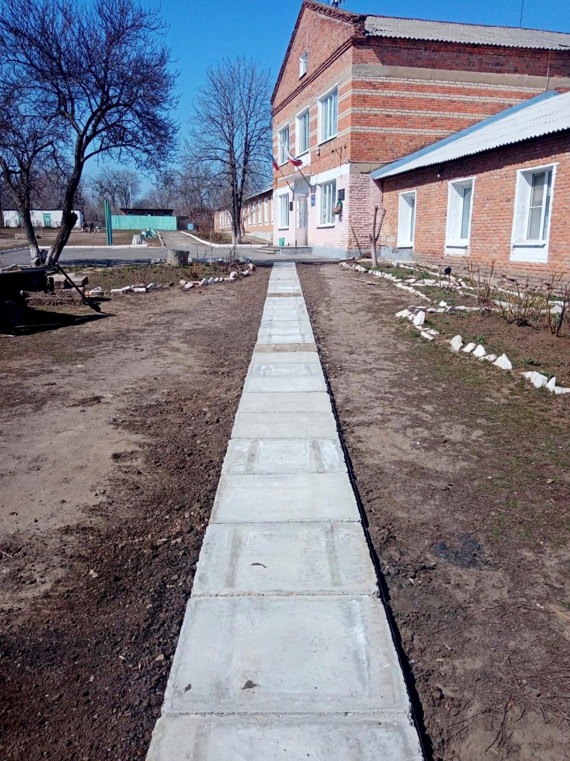 Пока дети отдыхают на весенних каникулах, наши папы помогают облагораживать школьный двор  У нас появилась новая бетонная дорожка!