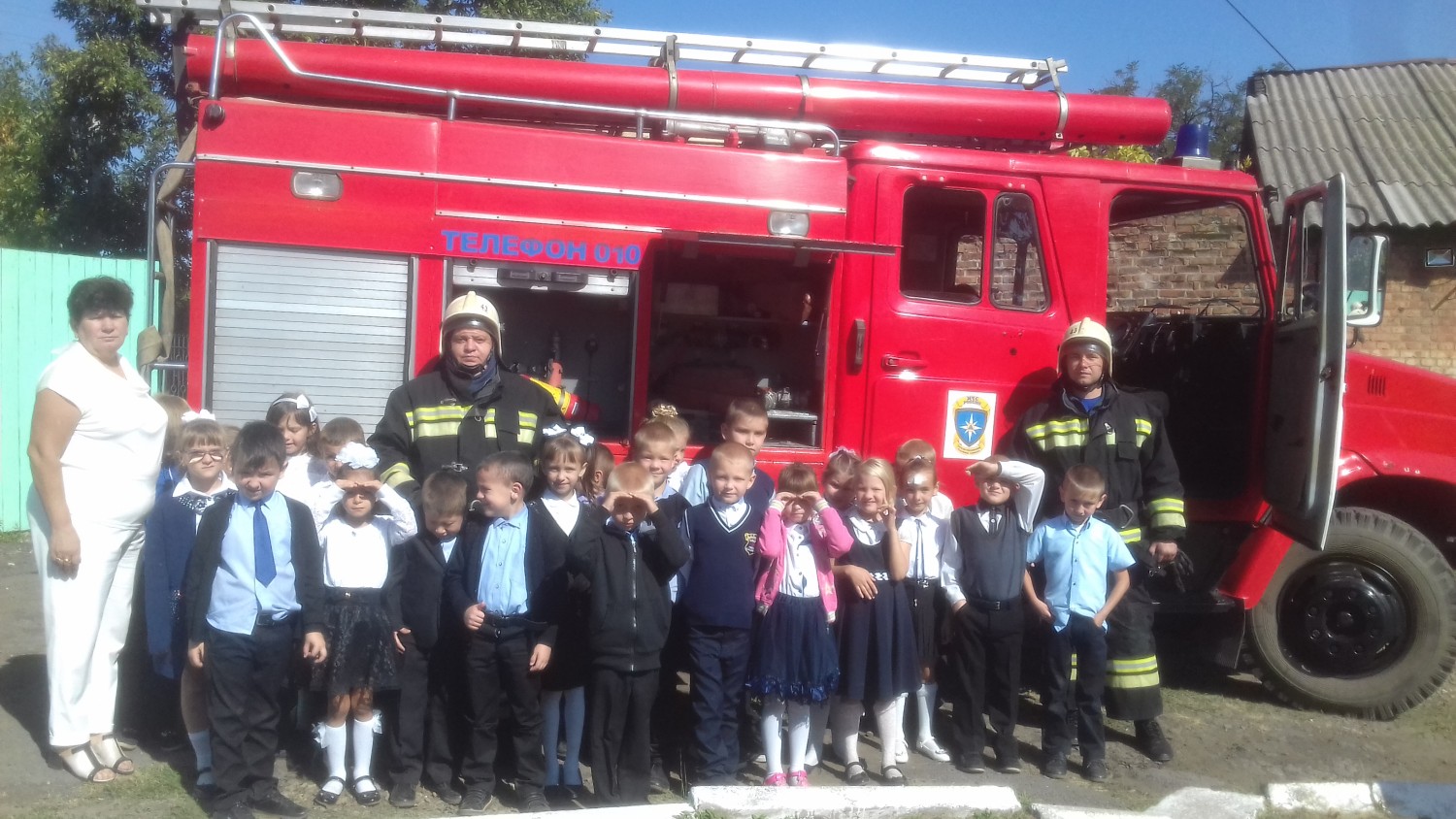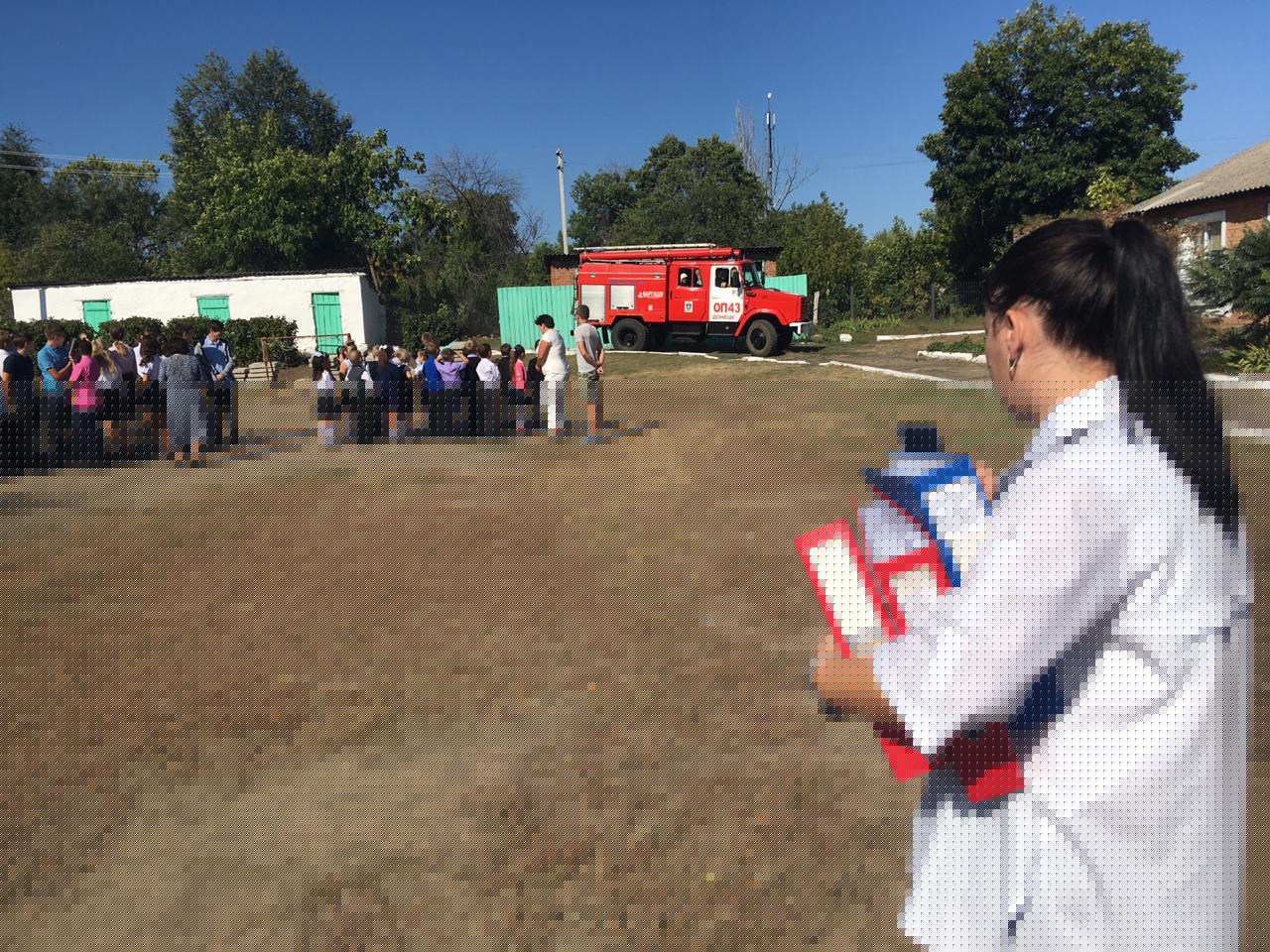По тревоге в школу направилось пожарное отделение ОП43 ПСЧ г.Донецка. командир отделения Аверкин Е.С.